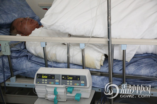9日上午,记者在温州解放军一一八医院住院部8楼烧伤重症监护病房,看到林进勉的妻子谢阿秋。全身被绷带缠绕的谢阿秋静躺在病床上,悬空盖着一床大棉被,痛得发出阵阵呻吟。