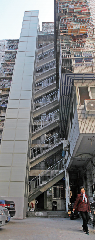 昨天,市区杨柳公寓叶老伯带着一位老人,体验他家所在大楼新装的电梯。叶老伯说,为装这部电梯,他和伙伴们努力了8年。八年来克服了其他业主同意,费用分摊等等问题,大家终于用上了电梯。叶老伯一家就交了19400元,电梯总共花了32万元。钱还有多余,将用于日后维护等。