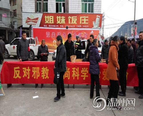 温州网讯 2017年1月16日至18日,苍南县霞关镇在霞关码头组织开展以“反对邪教崇尚科学珍爱生命”为主题的宣传活动,并且利用流动宣传车在全镇范围内进村入户进行轮流宣传。