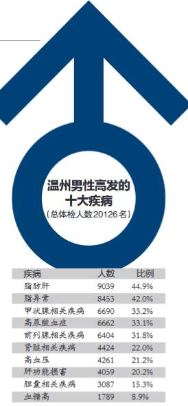 体检数据显示:温州男性易得脂肪肝 女性乳房问题多