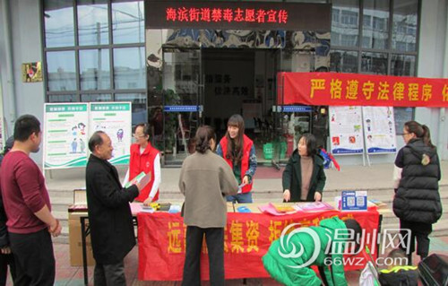 温州网讯 2017年3月15日,是消费者权益日设立35周年的日子。龙湾区海滨街道防范办联合禁毒办、司法所等部门在辖区海滨街道行政服务中心门口开展反邪教、禁毒、法律宣传等为主题的综合类宣传活动。