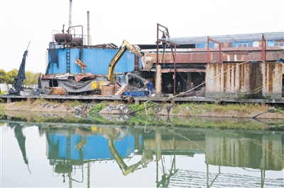 世界水日 龙湾拆除违章建筑物还一方河清岸美