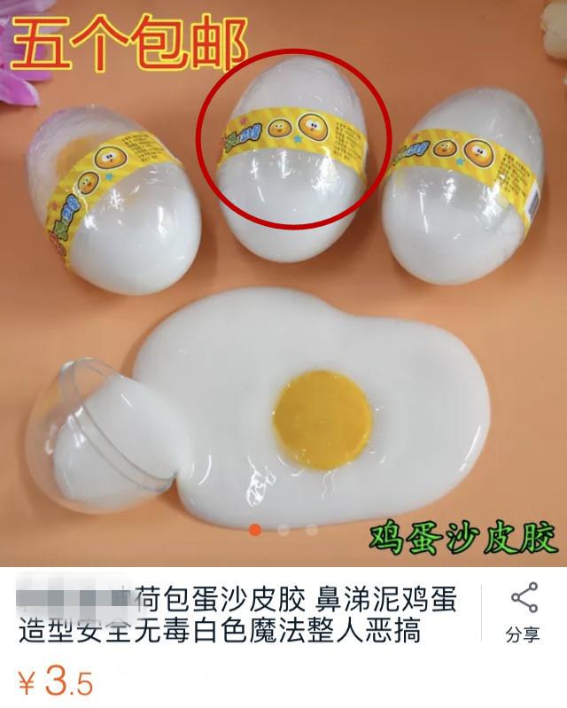 根据这一信息,记者很容易就在网购平台上搜索到相关的仿真玩具鸡蛋(见下图)。对比两者可以发现,网上售卖的这款“恶搞玩具”——沙皮胶鸡蛋和网传视频中的“假鸡蛋”一模一样,连使用的标签都是相同的。