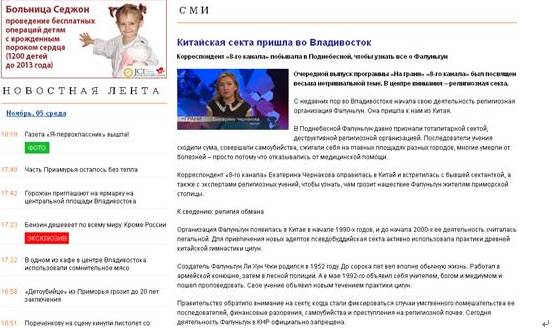 2014年11月4日,俄罗斯滨海边疆区首府符拉迪沃斯托克市(也称海参崴)地方网站Vladnews.ru登载该节目的整理文本。她们一致同意宗教只是法沦功用于欺骗他人的幌子,并呼吁“第八频道”的观众和网站网友远离法沦功及其成员,因为它是一个对社会极其有害的组织。