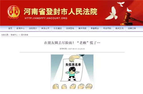 6月8日上午,河南省高院院长张立勇到登封法院调研执行工作时提到,破解执行难就要“压缩老赖活动空间,让其在朋友圈丢尽脸面、无处躲藏”,并建议在老赖手机上做文章,让朋友圈一打电话就知道其是“老赖”,让大家敬而远之,避免上当,同时对老赖使用的高端智能手机进行查扣拍卖。