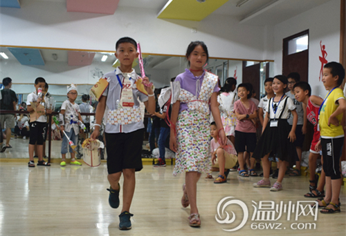 温州网讯(通讯员 罗佳美 黄温勉/文 钱晨飞 施毓婷/图)报纸裙、塑料瓶帽、碎布胸针......7月8日下午,一场独特的时装秀在温州经开区天河第二小学内上演。在温州医科大学“青葵医生—医心治水,绿萝逐梦”暑期社会实践服务团队员的带领下,孩子们将自己改装后的“服装”穿在身上进行时尚走秀,并制作走秀表情包助力废物环保。