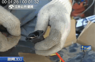 一位资深的电动车修理师傅做了一个试验,用电线模拟金属物体接触电动车充电端口的情况,结果电线立即被强烈的电弧点燃并融化,师傅表示这相当于60V电压强放电,对人体非常危险。