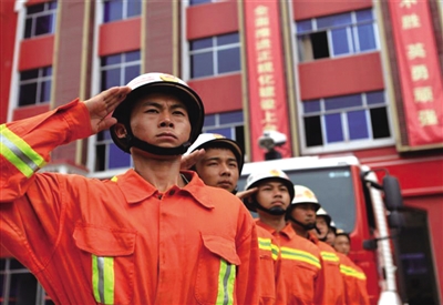 整装待发的消防队员。