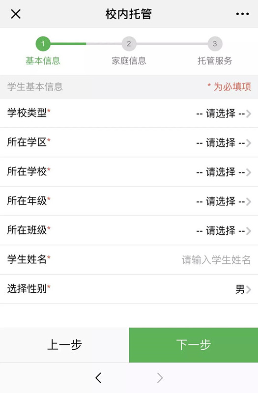 3、登陆托管报名系统,按步骤填写相关资料并提交缴费;