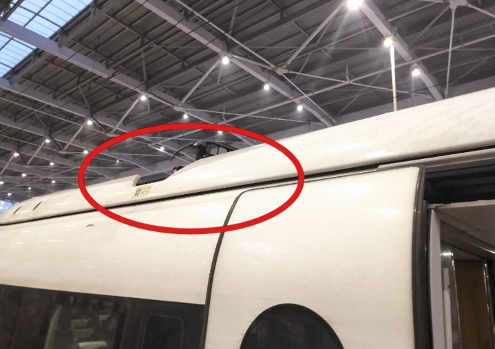 昨天下午4时36分,从杭州东开往温州南的G7567次列车在停靠宁波站时,第15节车厢顶部传来巨响,现场目击者看到顶部有一团火光闪现。