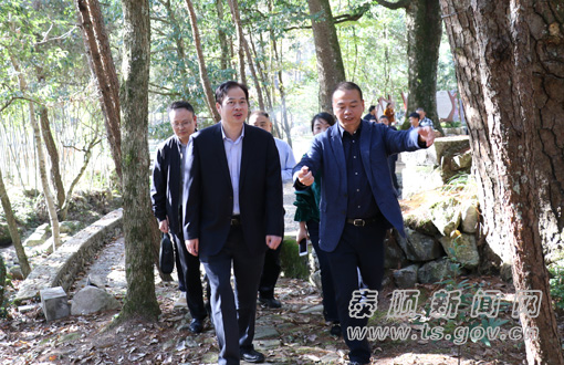 在罗阳镇岭北社区村尾村,陈永光一行沿着岭北古道,详细了解古道两旁古树的品种、保护情况等。在岭北社区内,陈永光还观看了岭北美丽乡村建设的视频资料,对岭北美丽乡村建设工作取得的成绩给予赞赏。