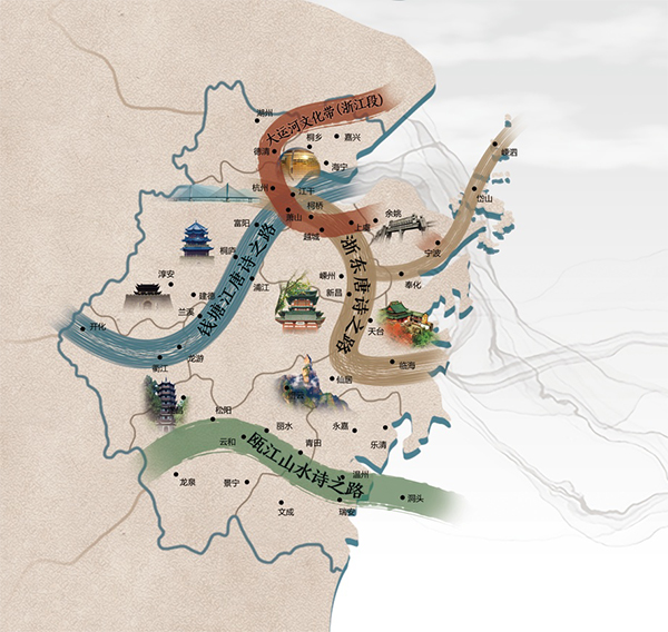浙江“四条诗路”制图:安瑛梁淑敏