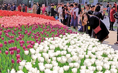 第15届马鞍池公园郁金香花展吸引众多市民前来赏花。刘伟摄