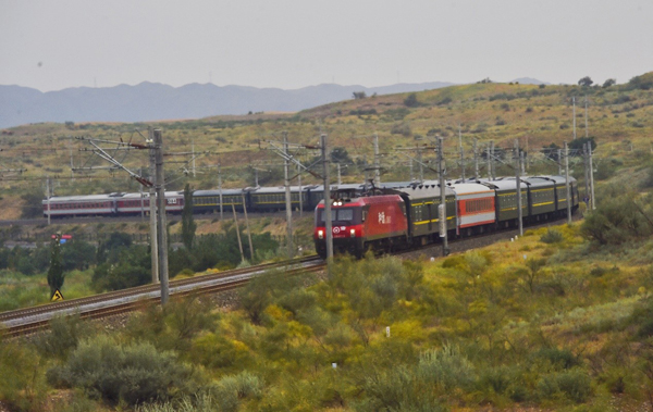 包兰铁路上的列车正在平稳运行 (张玫/摄)