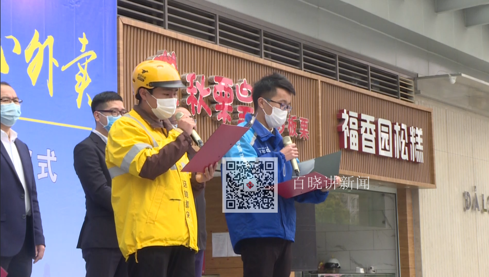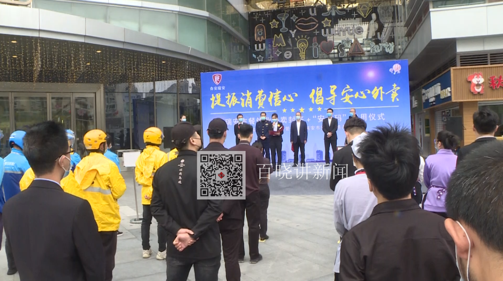 4月1日上午,在瑞安吾悦广场,“餐饮业外卖封签+‘安心码’”仪式启动。