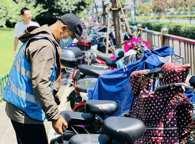 “伸手扶一把,随手理一理,不光摆好我们自家的哈啰,顺道一条街的单车、电动车我们都给码码齐,路面看着多舒服”温州市哈啰共文行动队员一边整理路面车辆一面说道。