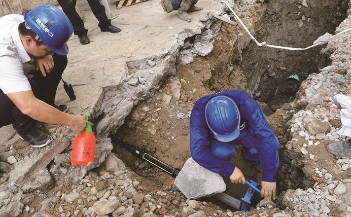 据了解,城市中心北二期片区排水管网整治工程的施工单位为东阳市诚峰建设有限公司。该公司施工现场的负责人陶先生说,施工时已经很小心了,没想到还是发生了挖破燃气管道的事情。他表示,之所以会挖破燃气管道,跟管道两边深度不一致有一定关系。