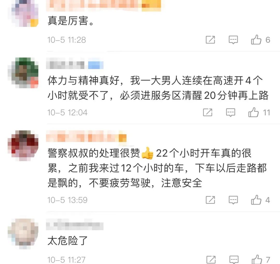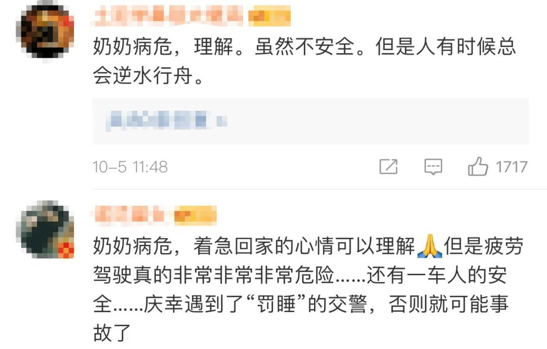 网友评论:“奶奶病危,理解。但疲劳驾驶真的非常非常非常危险……庆幸遇到了‘罚睡’的交警,否则就可能事故了。”