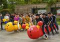随后,团体项目竞相登场即。“加油......加油......快跑!”作为历届运动会的气氛担当——“毛毛虫”项目,一开赛就将现场点燃。不少参赛队伍喊着整齐的口号,一只只多彩的毛毛虫在赛场上全速前进。