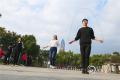 踢毽子的赛场上,也是精彩不断,王分享秘诀说,“要从容不迫,有节奏地踢。”