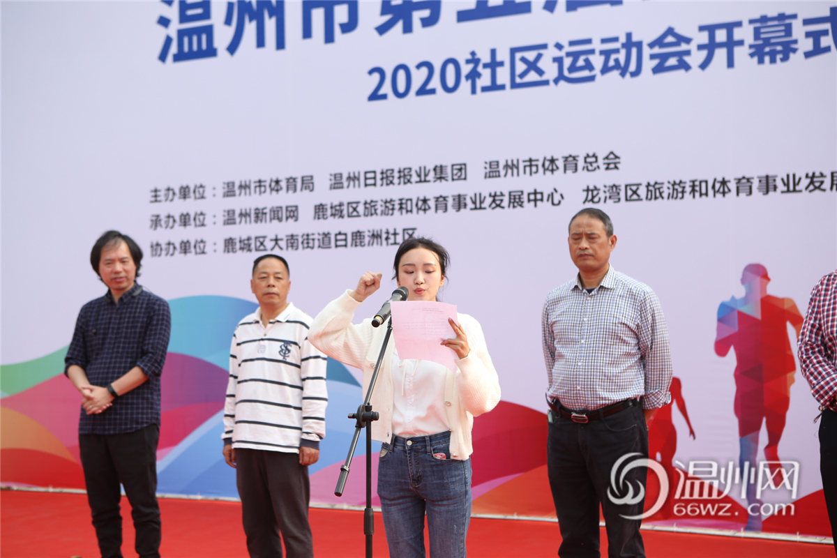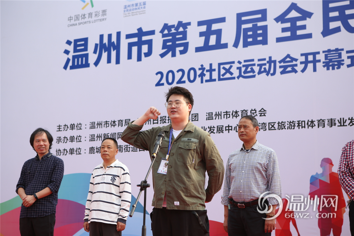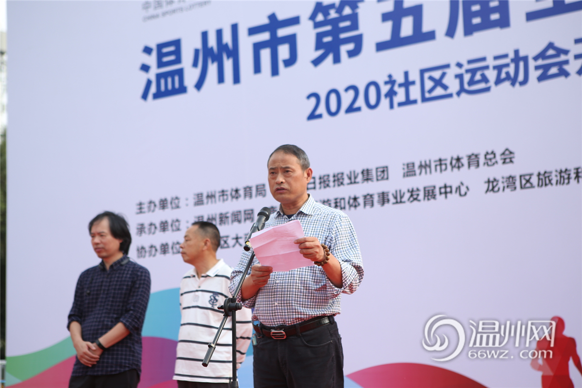 温州市体育局群体处处长温从达宣布温州市第五届全民运动休闲大会2020社区运动会正式开幕。
