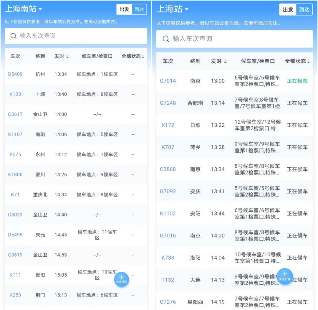 说上海南站的候车状态全部跳掉了