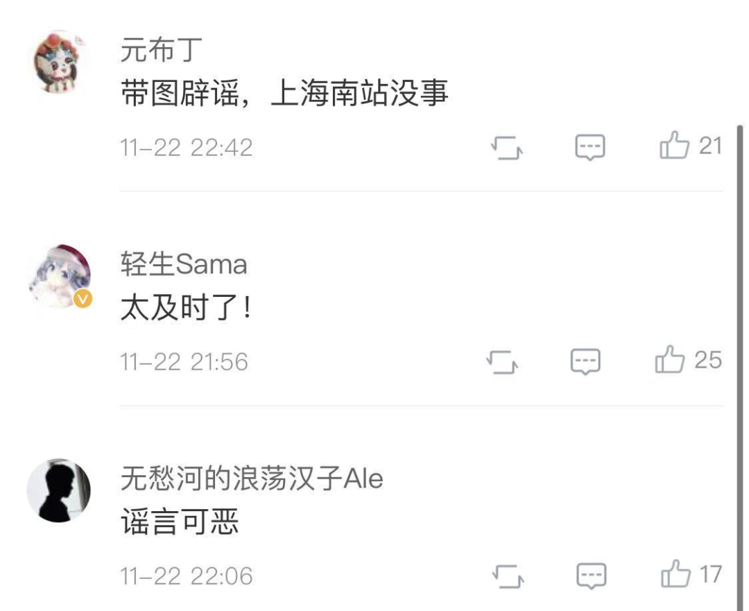“上海南站没事,一切正常”
