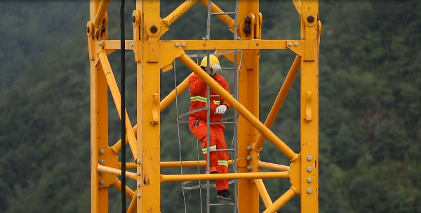 塔吊司机鲁荣强每天六点多登上大桥后,还得沿着30米的杆子爬上塔吊。今年28岁的鲁荣强操作塔吊已有十年了,干过的大项目也不少,但他坦言,像这么高的塔吊还是头一回。“塔吊的高度总共应该在210多米,是刷新我的记录了。”