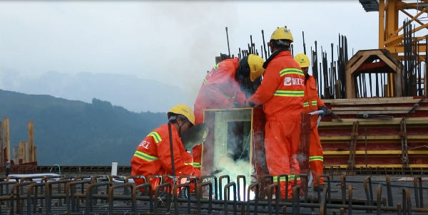 这个春节对该项目部来说压力不小,去年受疫情影响,小桩号的施工进度一直落后于对面的大桩号,眼下又恰逢工程关键节点,为赶上进度,春节期间工地上专门留下30多名技术工人坚守一线。电焊工俞马林负责检查预埋铁板的安装,只见他冲过层层钢筋钻下去调整位置。俞马林告诉记者,这个春节原本是儿子的婚期,但是为了赶工期,他和家人们商量后,延迟了婚期,随后退掉了订好的车票,留在文成过年。