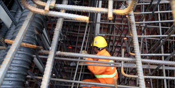 大桥施工方负责人曹志正指挥工人们仔细检查每根钢筋的绑扎牢固度:“目前我们到了下横梁第二次施工这道关键的工序。这道工序比较复杂,所以我们小桩号的施工人员和项目部的技术人员、管理人员都留了下来,打算一鼓作气把事情做完,争取尽早完成混凝土浇筑。”