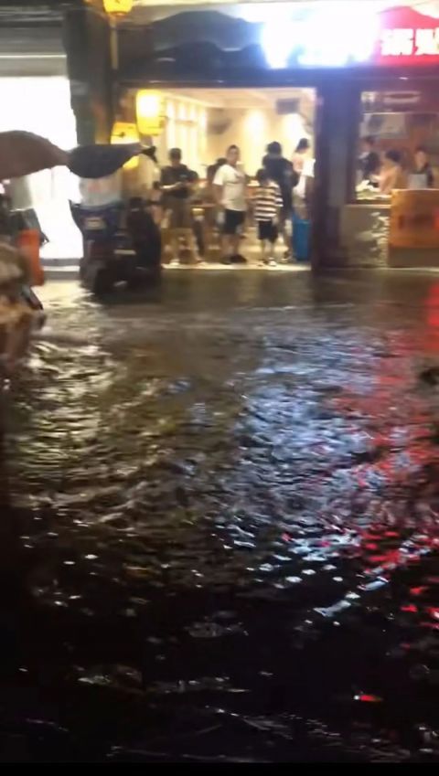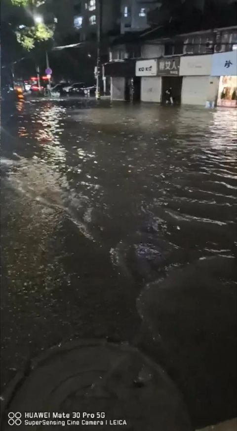 突如其来的暴雨给市民的出行带来了诸多不便。许多市民在朋友圈晒出了积水图。