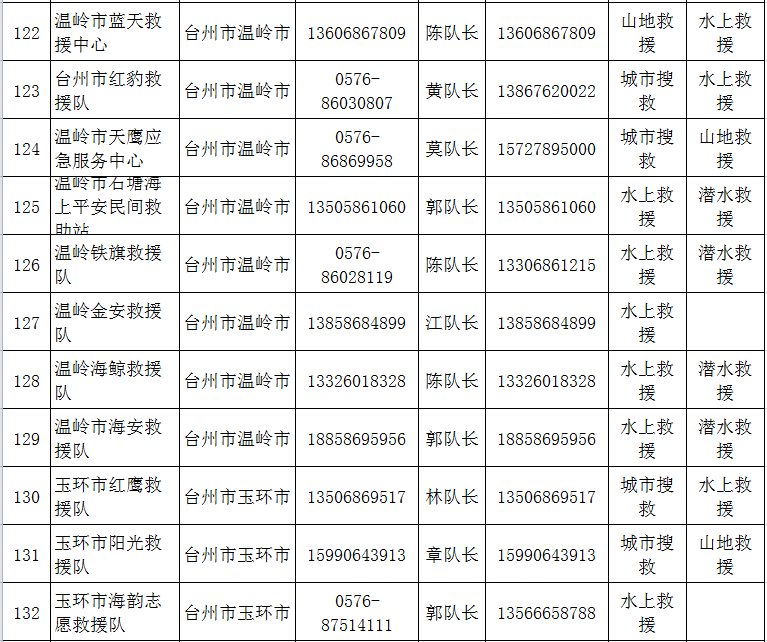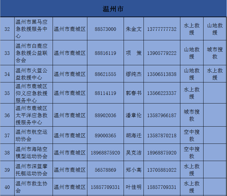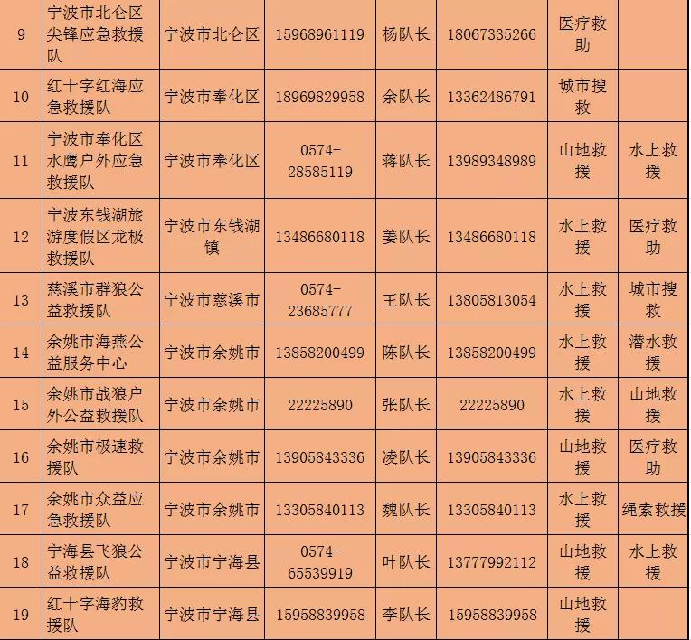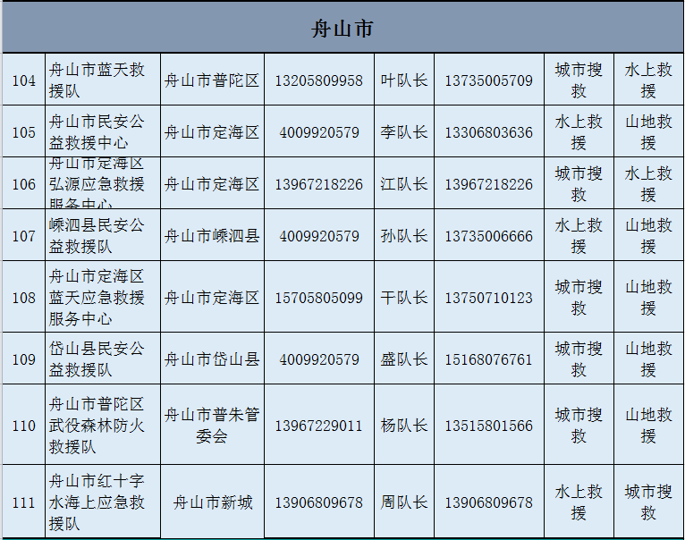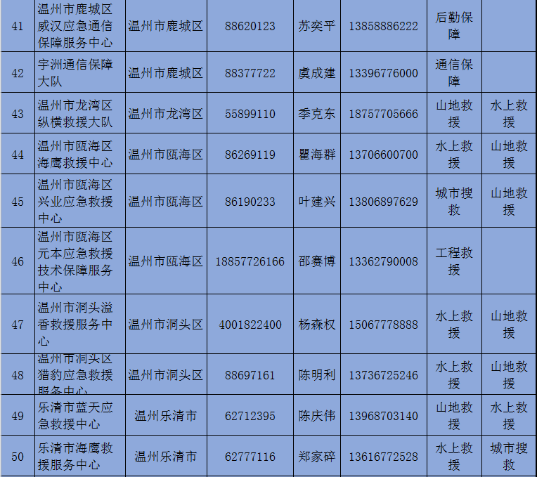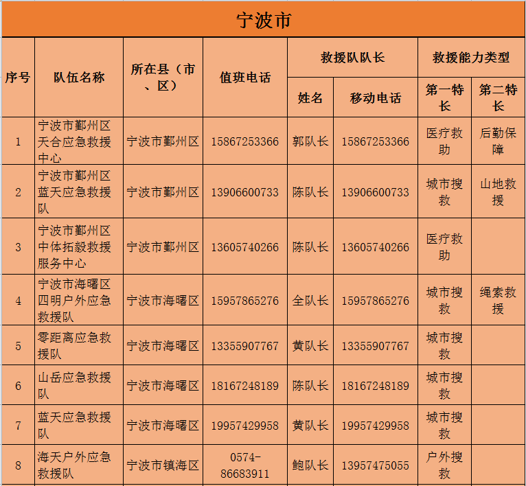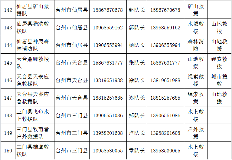 省防指办(省应急管理厅)和宁波、舟山、嘉兴、绍兴、台州、温州市防指办(市应急管理局)今天对外公布150支社会应急力量电话,若你身边有人需要紧急救援,可拨打以下电话。