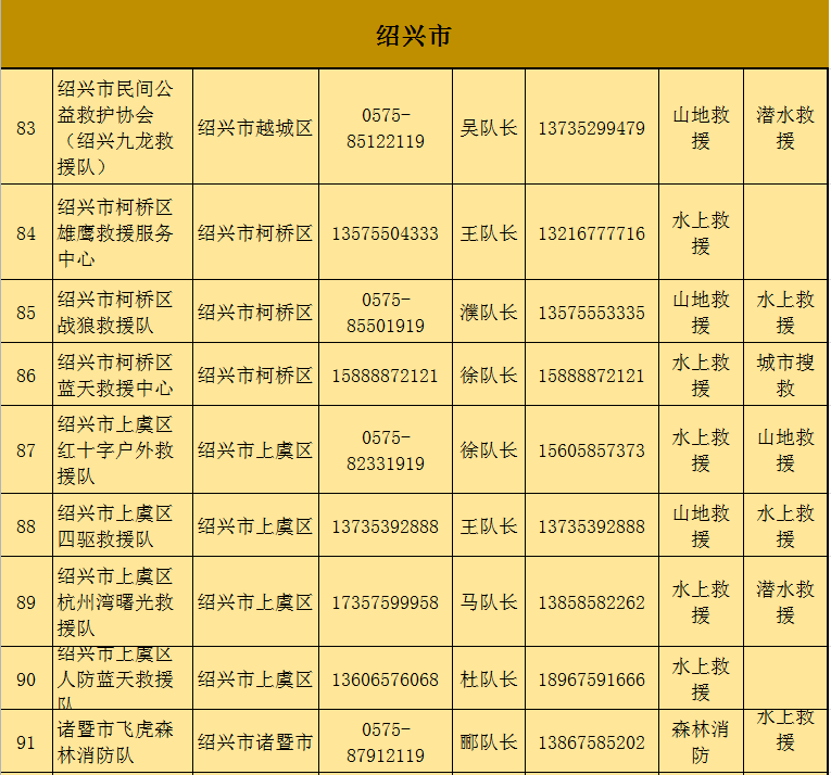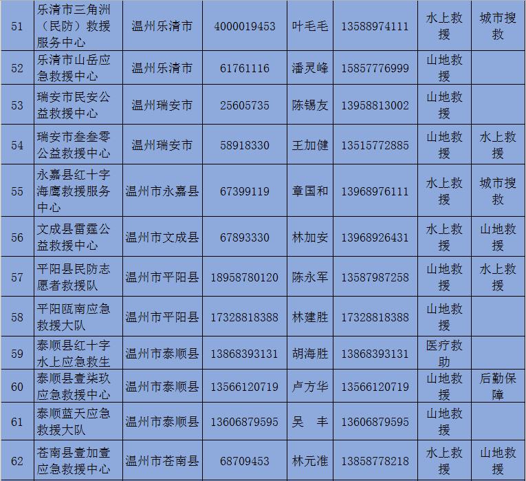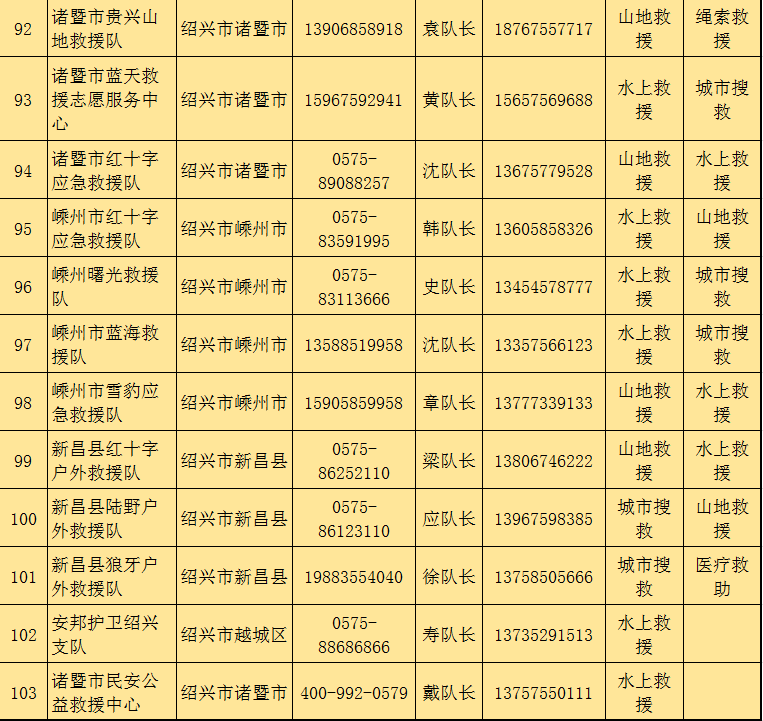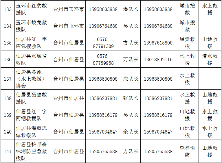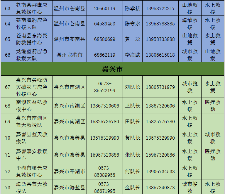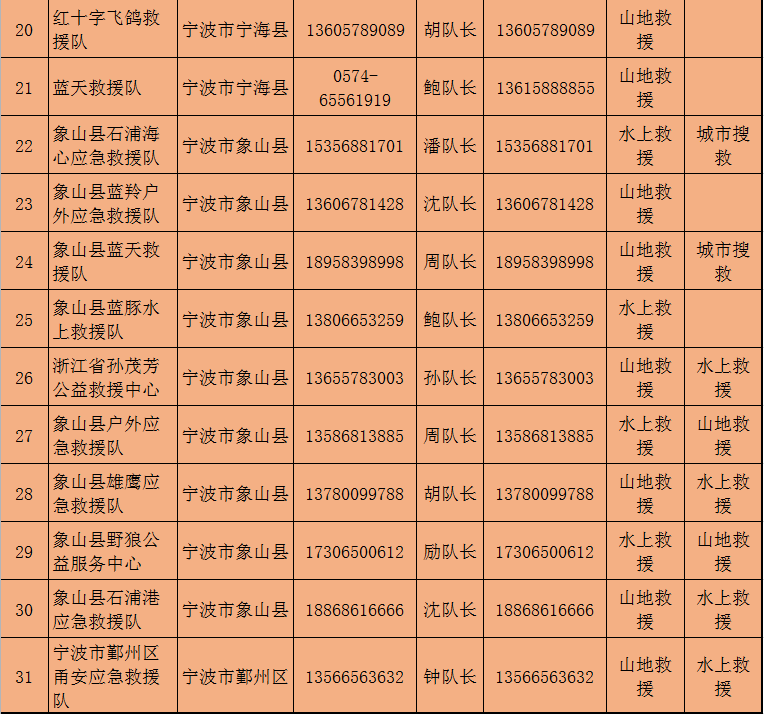 省防指办(省应急管理厅)和宁波、舟山、嘉兴、绍兴、台州、温州市防指办(市应急管理局)今天对外公布150支社会应急力量电话,若你身边有人需要紧急救援,可拨打以下电话。