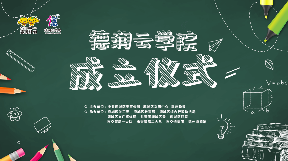 本次活动由鹿城区委宣传部、鹿城区文明中心、温州晚报主办;鹿城区关工委、鹿城区教育局、鹿城区综合行政执法局、鹿城区文广旅体局、共青团鹿城区委、鹿城区妇联、市交管局一大队、市交管局二大队、市交运集团、温州道德馆等承办。市文明办、文明中心副主任余庆,鹿城区委常委、宣传部部长曾伟,温州日报报业集团副社长、温州晚报总编辑林宇共同启动德润云学院。