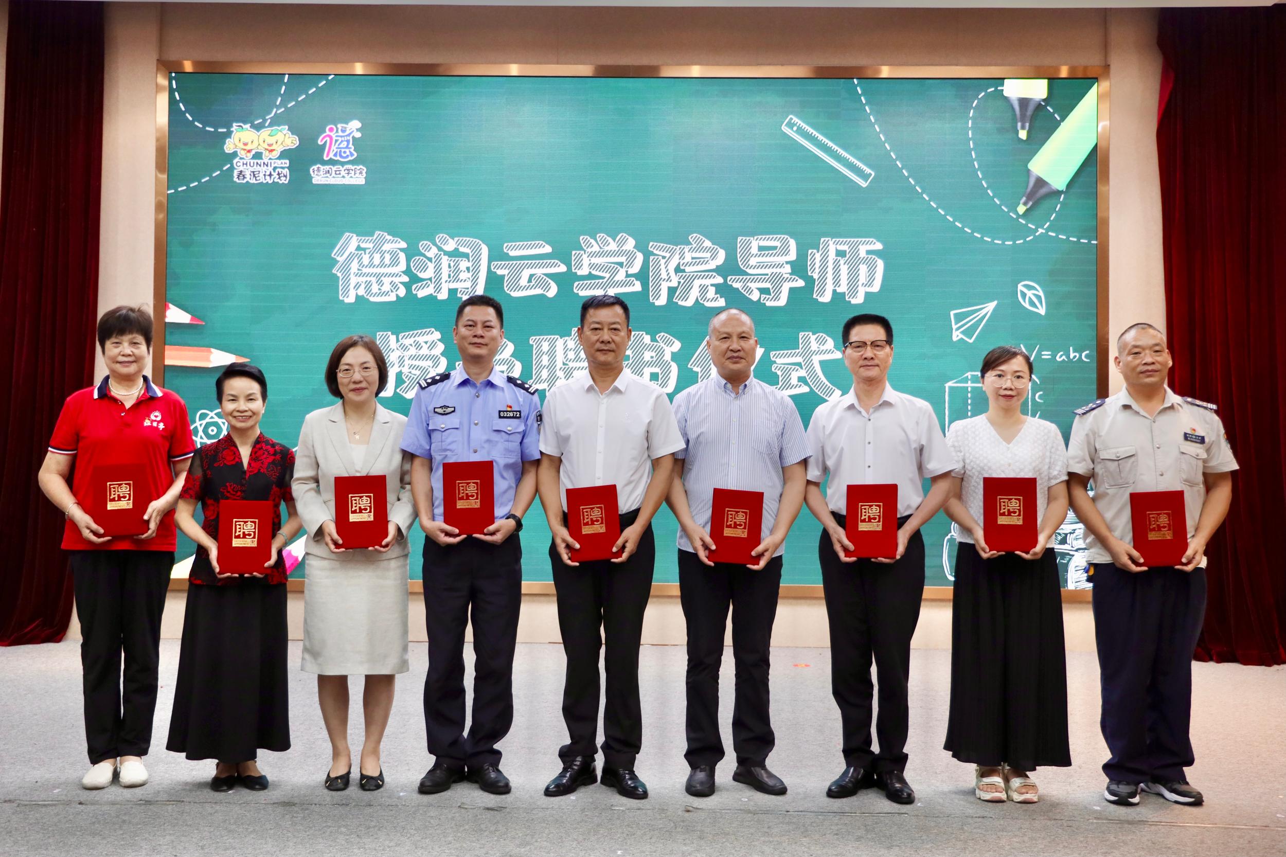 仪式现场举行了德润云学院授牌、院长聘任仪式;战斗英雄、一等功臣虞尚义、林秀勇,全国公安英模周扬,全国岗位学雷锋标兵郑雪君,全国抗疫先进个人蔡玉伟,鹿城籍奥运中国健儿徐嘉余,市级道德模范、温州医科大学附属眼视光医院党委副书记陈洁等被聘为德润云学院导师;同时,温州实验小学、籀园小学、蒲鞋市小学等10所学校成为德润云学院“德育点单”基地,导师到学校开展公益德育主题宣讲。