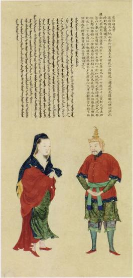 二王和臣子跪拜在宋高宗遗留的龙椅前 余承信 绘