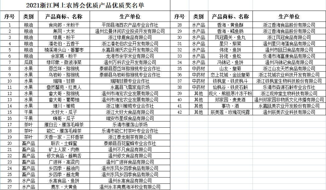 来源:温州新闻客户端原标题:18个温州产品获2021浙江网上农博会金奖