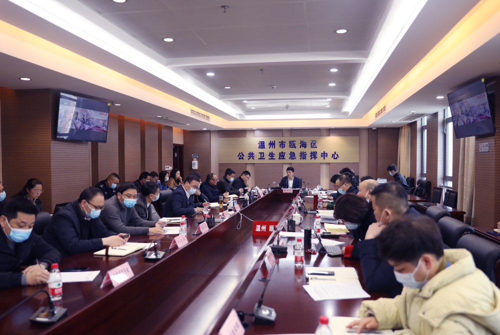 温州网瓯海支站讯 1月8日,瓯海区委书记曾瑞华在疫情防控工作研判会上指出,要聚焦短板漏洞,进一步优化指挥调度体系,细化完善应急处置工作机制,毫不松懈抓实抓细各项疫情防控措施。副区长杜潘祚参加会议。
