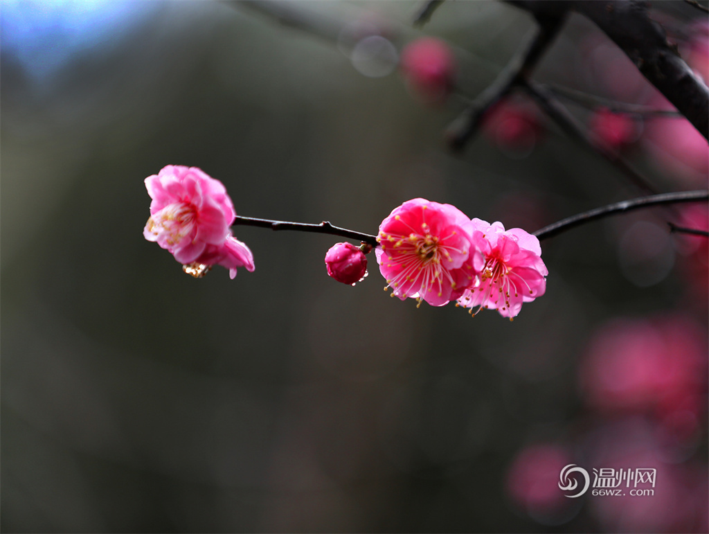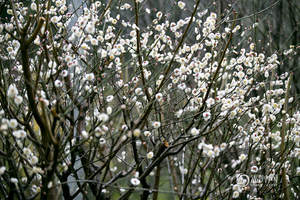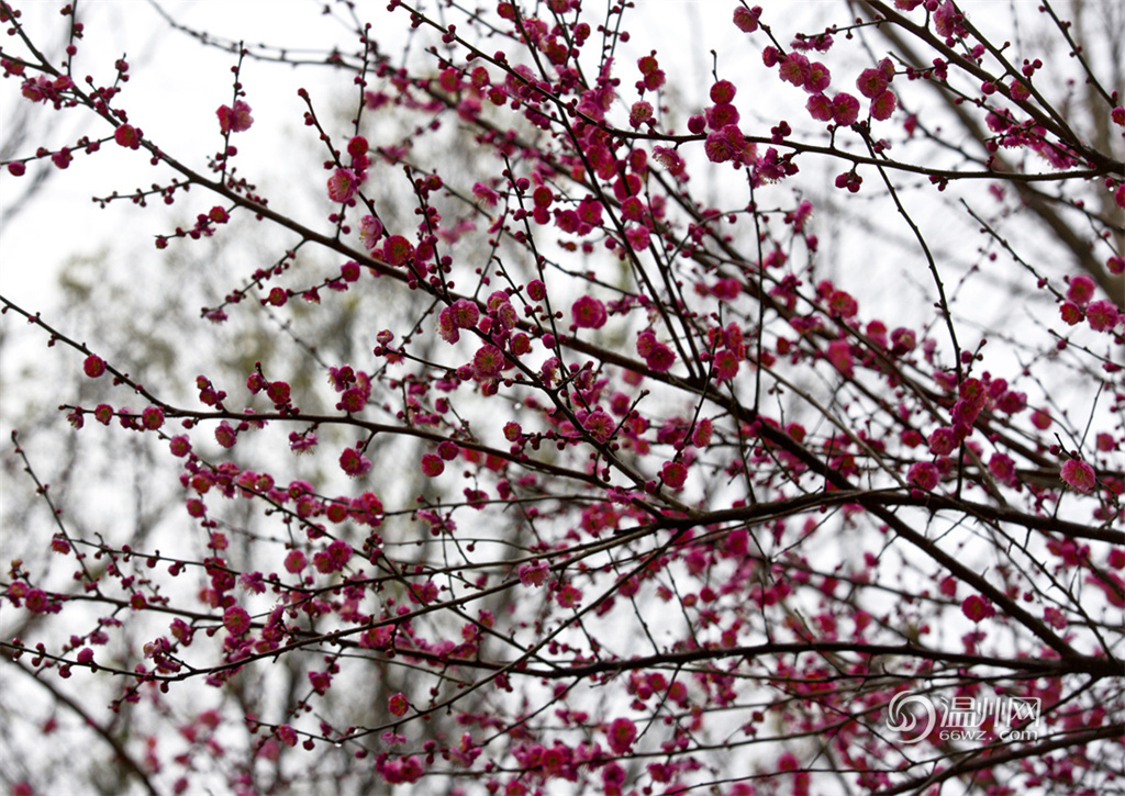温州网讯(摄影 王赛珍)近日,温州市区景山公园内的梅花开放了,盛开的梅花争相斗艳,阵阵幽香扑鼻而来。