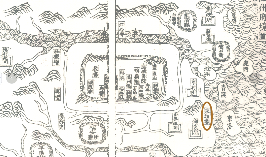 ▲明代温州府境图(局部)中的永嘉场