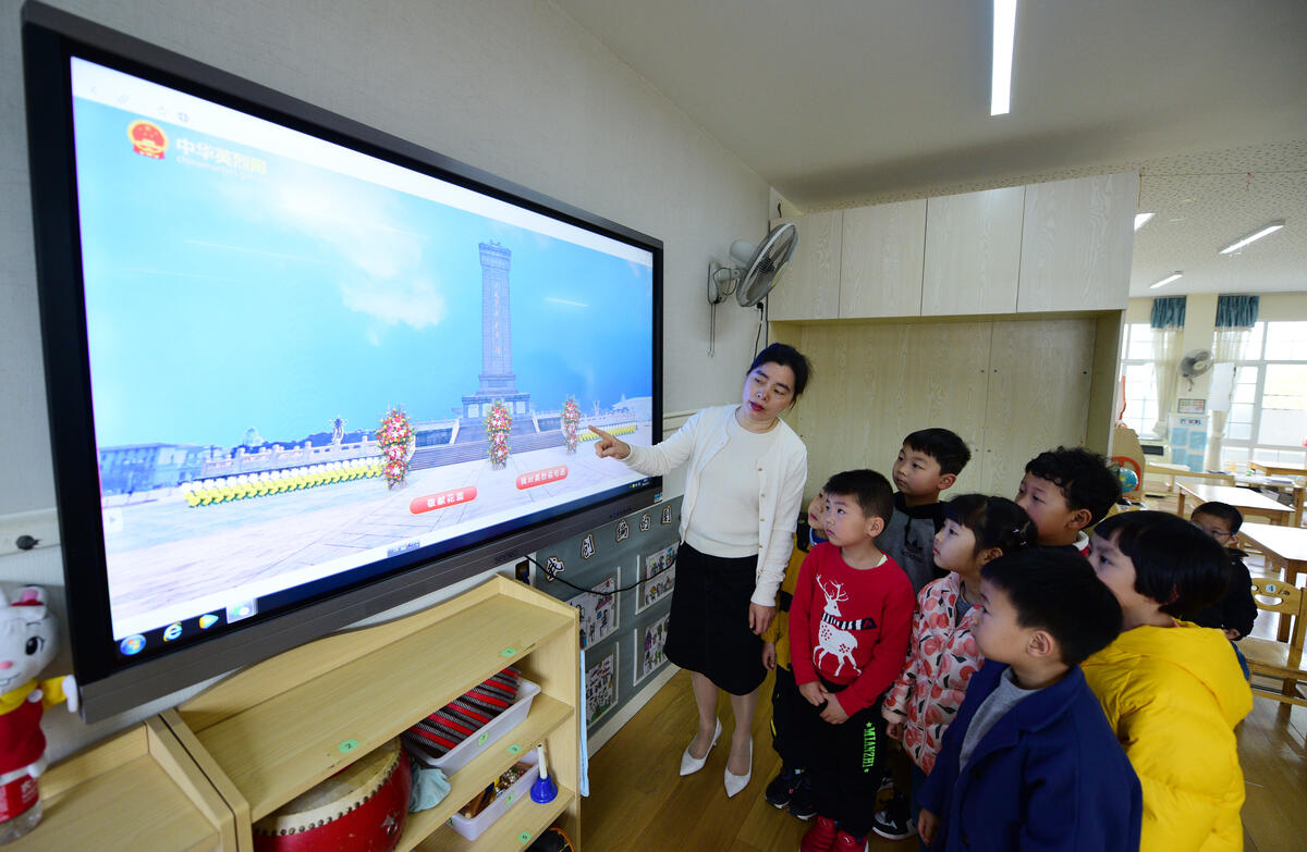 3月31日,义乌绣湖幼儿园举行“‘云端’过清明 网上祭英烈”活动。
