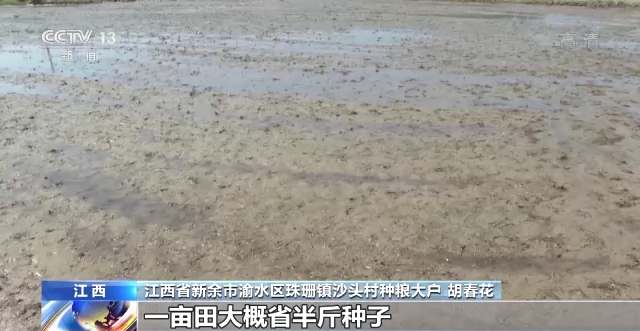 江西省新余市渝水区珠珊镇沙头村种粮大户 胡春花:无人机播种一亩田省半斤种子,这个无人机撒得又很均匀,好方便,也很省时间,也节省钱。