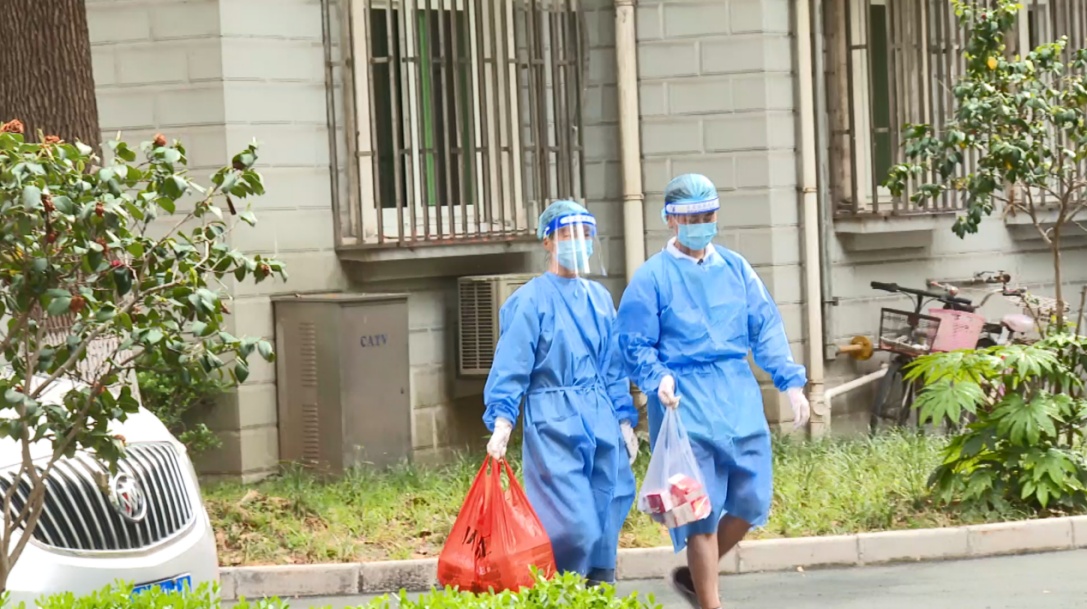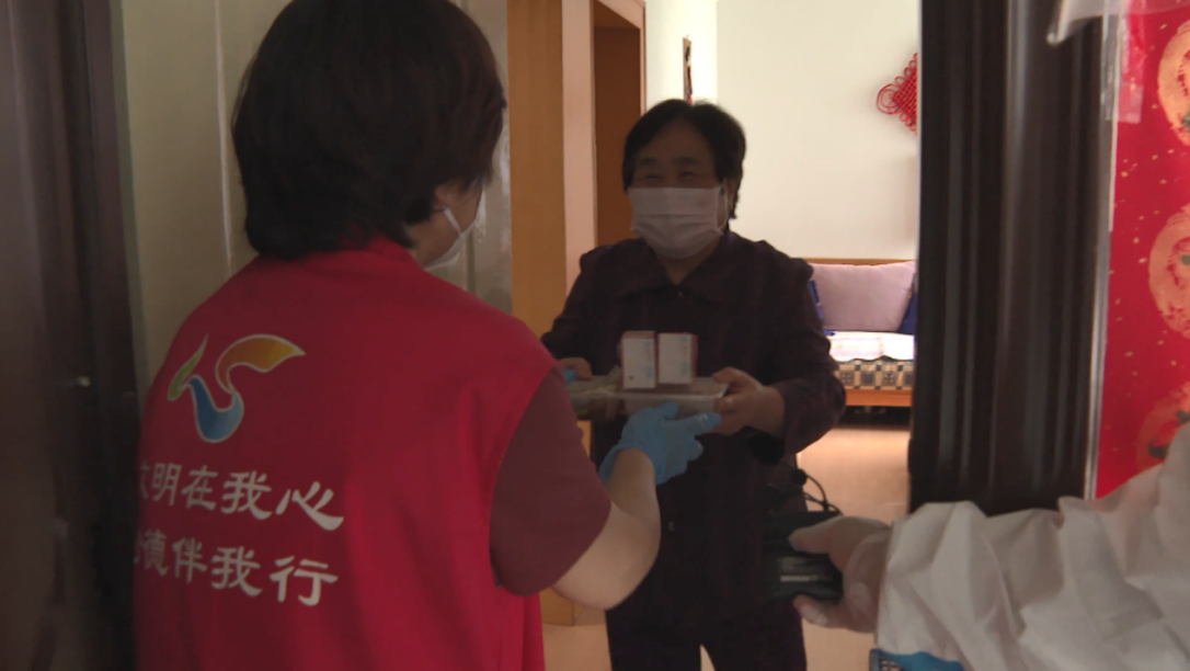张竹瑞老人收到社区志愿者送来的晚餐 张鹏摄