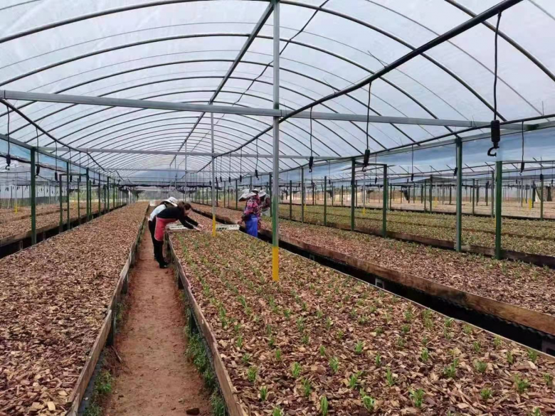 这里海拔约700米,四周群山环抱,云雾缭绕,日照充足,常年气温适中,空气相对湿度60%,自然条件得天独厚。该基地技术员王仁区说,眼下基地共有150多亩铁皮石斛,其中5亩为今春种下的新苗。“在这里种植铁皮石斛不容易,比如,今年正月一个深夜几只野兽窜进基地,糟蹋了一批铁皮石斛,经济损失七八万。事后,他们只得加固了基地的围栏。”