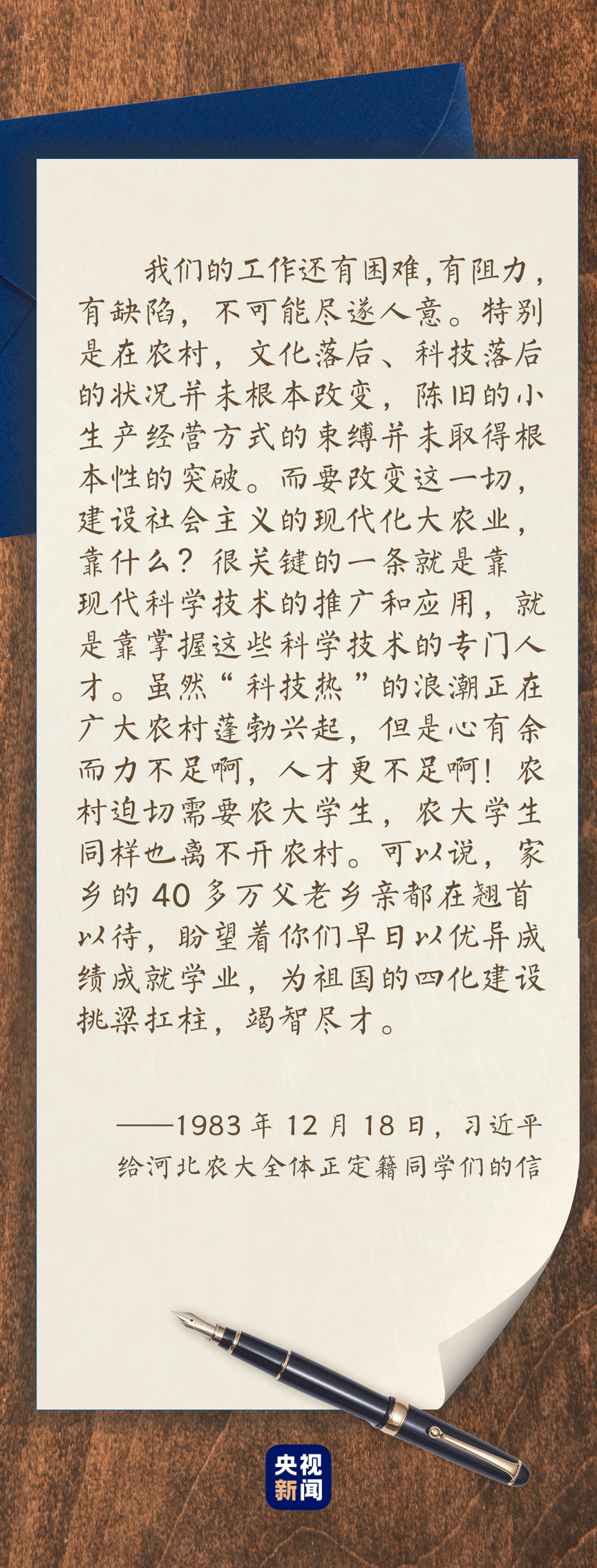 1983年12月,时任正定县委书记的习近平给河北农业大学正定籍学生写了一封信。