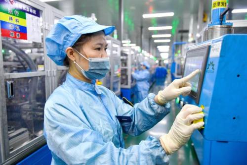 位于浙江省湖州市长兴县的超威锂电智能化工厂,技术人员正在赶制新能源电池产品。视觉中国图