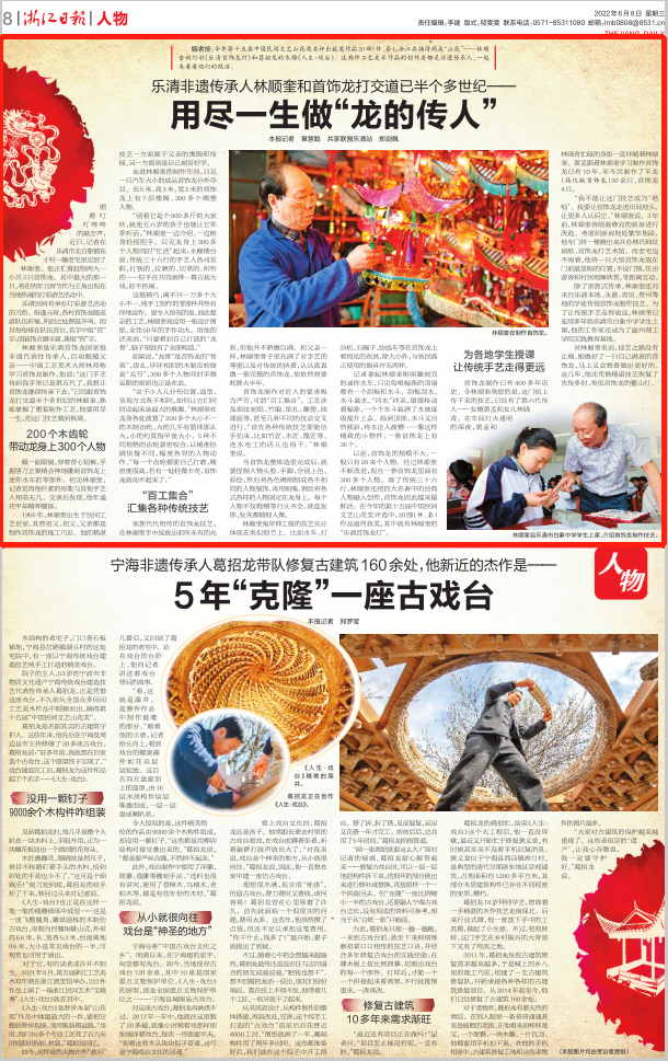 今天出版的《浙江日报》,在人物版对此进行了报道: