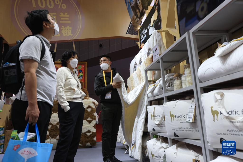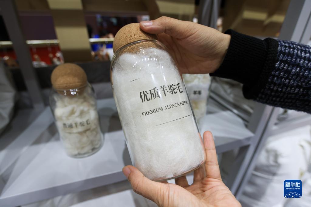 在第五届进博会上,来自澳大利亚、新西兰和秘鲁的展商“不约而同”展出羊驼毛制品,蓬松柔软、形态各异的动物玩偶在展台“列队”,吸引大批观众前来交流洽谈,为进博会增添一抹可爱的亮色。 新华社记者 李京 摄