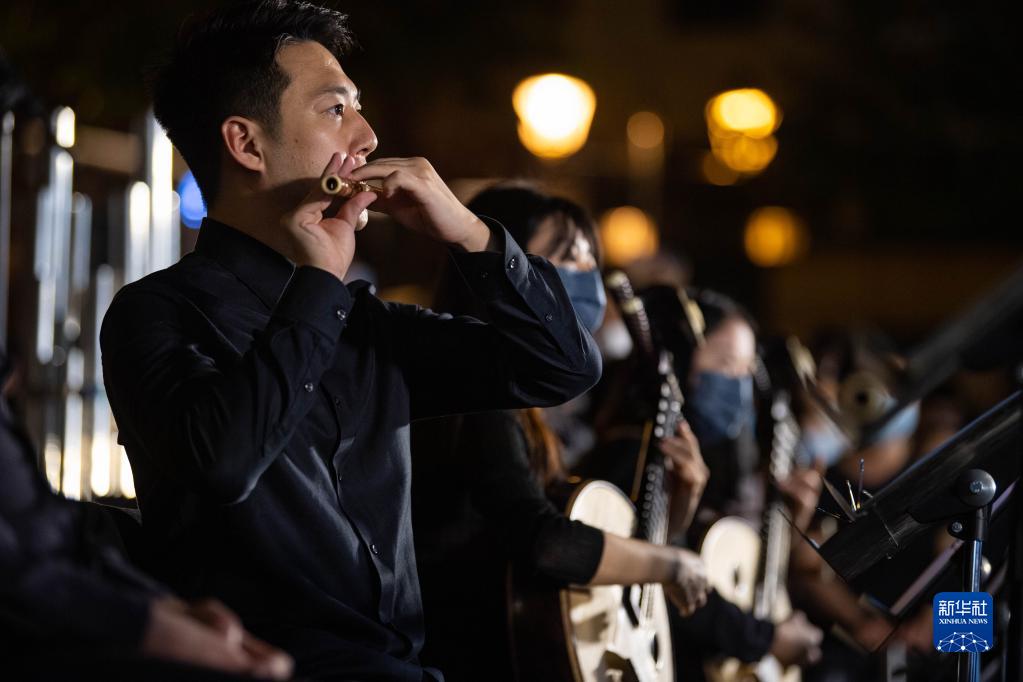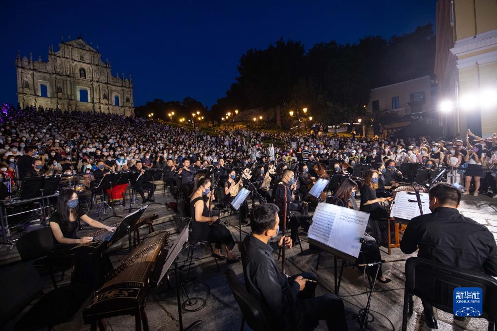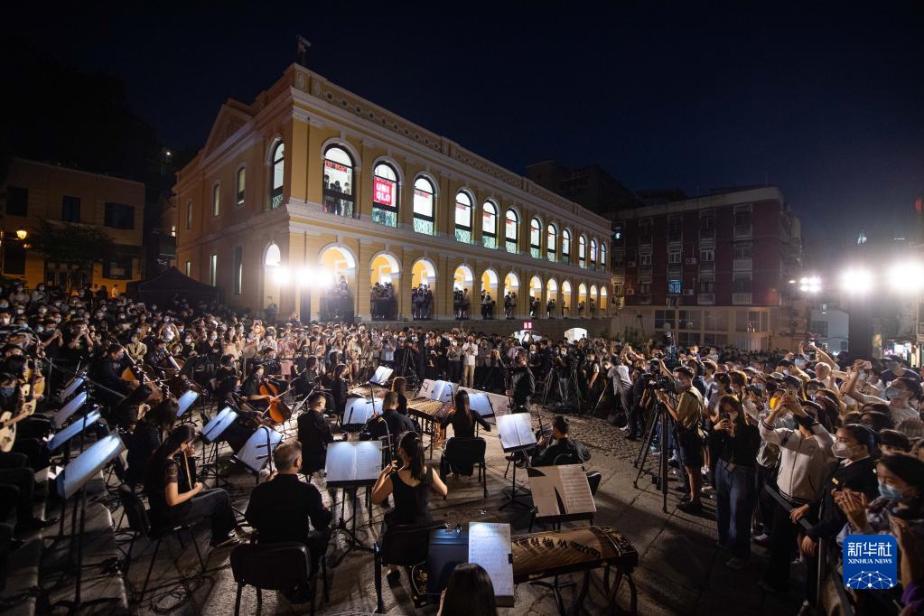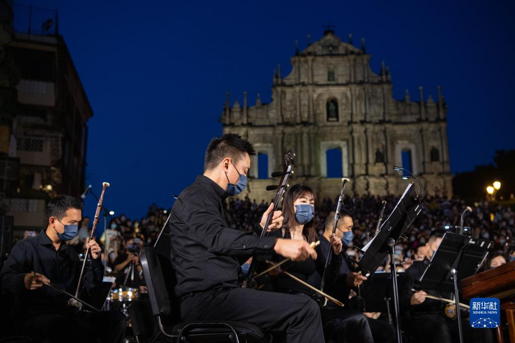 当日,由澳门文化局主办的“乐韵悠扬大三巴”活动在大三巴牌坊举行,澳门中乐团带来《万水千山总是情》《青花瓷》等曲目,吸引市民及旅客在夜空下驻足欣赏。 新华社记者 张金加 摄