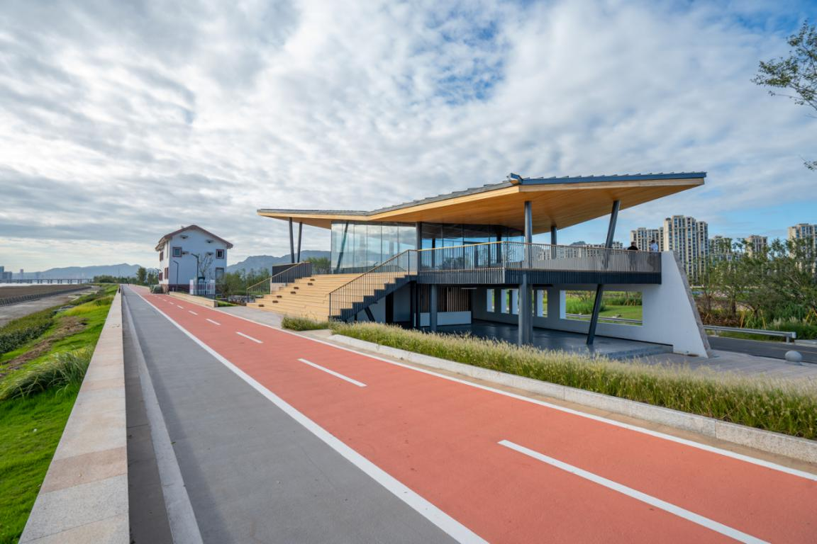 项目位于鹿城区七都街道,起于温州中心止于七都大桥北汊桥,长度约11.34公里。其中,七都西段标准堤加固工程长约1.4公里,实施后将消除海塘安全隐患,使七都海塘御潮能力恢复到100年一遇标准,为七都筑起一道安全防线,目前大桥段已完成加固,温州中心段今年开工,正在加快推进施工;环岛景观工程以海塘为依托,与绿地、田园旅游结合,对海塘及腹地进行融合提升,串联盘活七都旅游资源。部分塘段塘前保留芦苇等滩涂植被,塘顶游步道全线贯通。塘后结合美丽城镇、美丽乡村建设,打造环岛景观带,沿线布设湿地公园、露营基地、驿站、图书馆、观景台、停车场等节点和设施,打造可游览、可休闲的生态活力岸线。目前堤后四好环岛公路、环岛景观带已基本完工建成。野趣自然的环境吸引大量游客,也为百姓带来了真金白银。